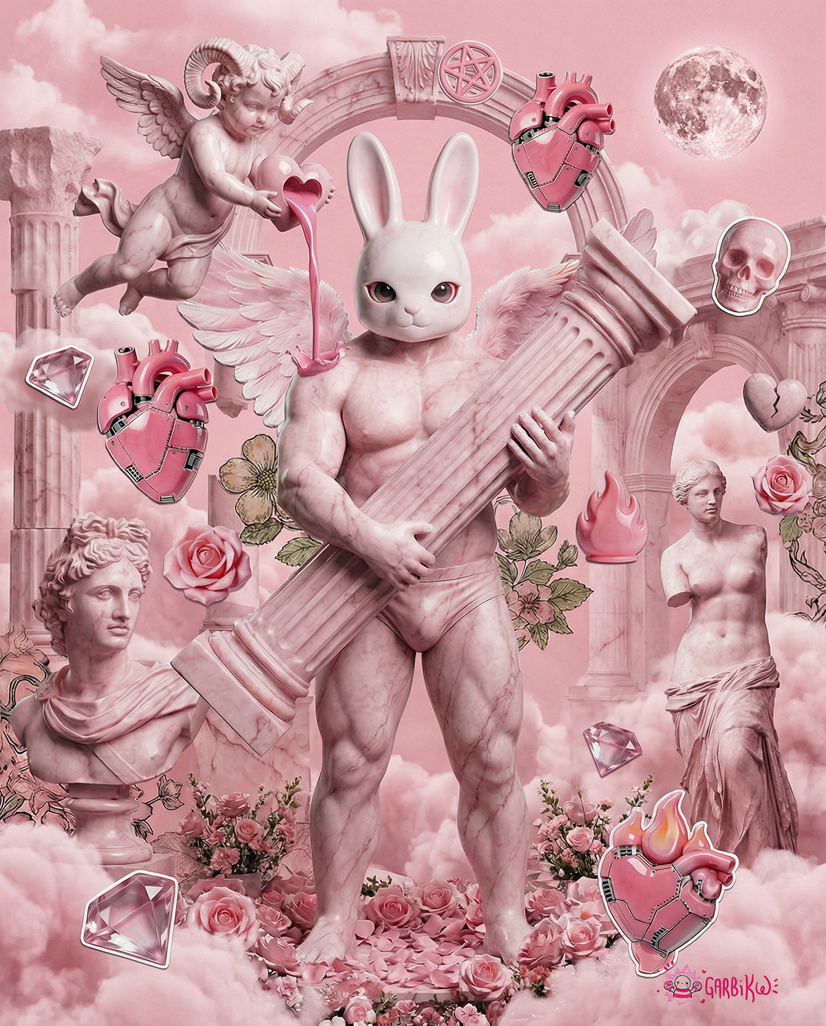 Trabajo con píxeles, con capas, con ritmos que no son míos pero que atraviesan mi cuerpo. Escucho una canción y, en lugar de oírla, la veo. La veo expandirse como un animal eléctrico, pedir atmósferas, reclamar fuego, túneles, torsos, superficies que respiren luz. Mi tarea consiste en construirle un hábitat. Levantarle un cielo artificial donde pueda latir más fuerte.