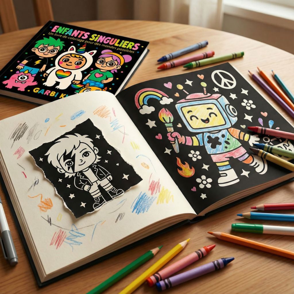 Niñes Rarxs contiene más de 100 páginas en blanco y negro, listas para colorear, intervenir y transformar. Cada página es un mundo posible que puede llenarse de color, de historias y de emociones distintas.